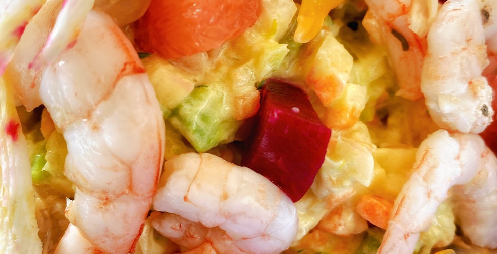 SALADE CROQUANTE AUX CREVETTES ET AUX COQUES